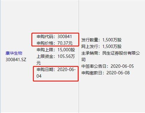 这周也有2只发行新股,分别是今天周四(6月4日)的创业板新股康华生物,认购编码300841;明天周五(6月5日)的科创板新股金宏气体,认购编码787106。特别注意的是,康华生物股价达到70.37元,也很可能变成大肉签新股上市。